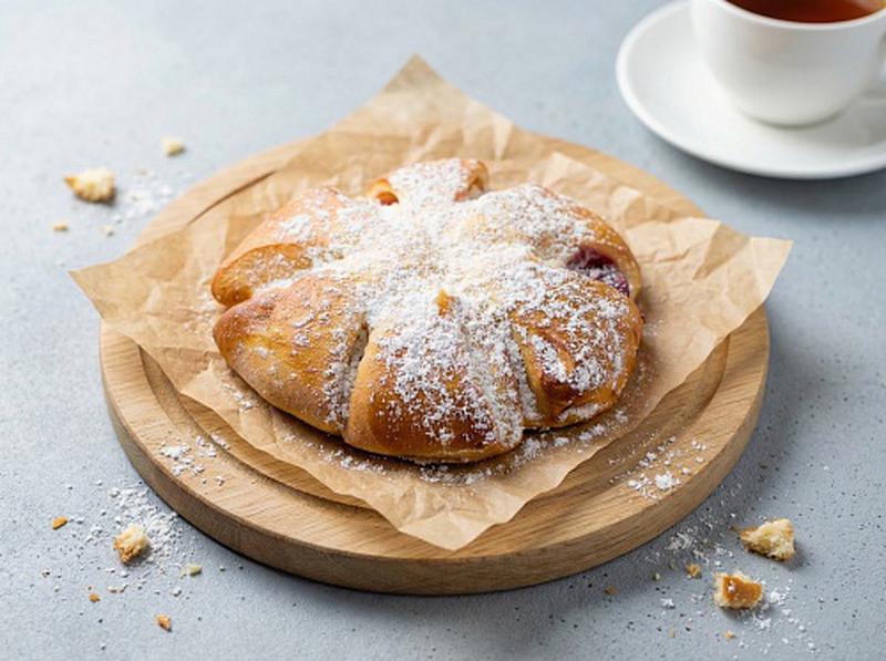 Состав: Сдобное тесто, брусника ягоды, творог, яйцо