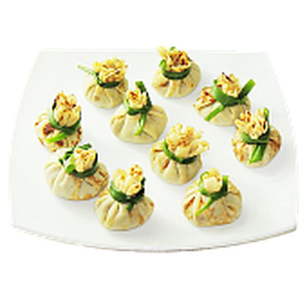 Состав: Блинные мешочки с белыми грибами, шампиньонами, жареным луком и оливковым маслом . Набор из 10 шт. по 40 гр.