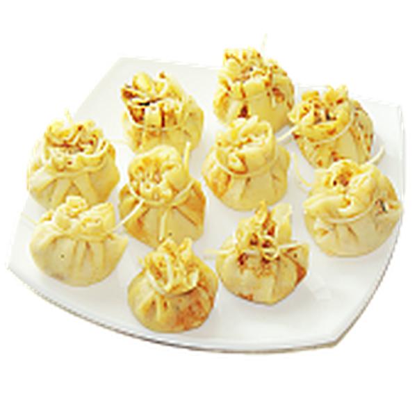 Состав: Блинные мешочки с семгой, икрой и сливочным сыром. Набор из 10 шт. по 40 гр.
