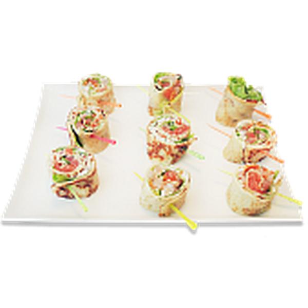 Состав: Блинчик, креветка, семга, лист салата, сливочный сыр. Набор из 10 шт. по 30 гр.