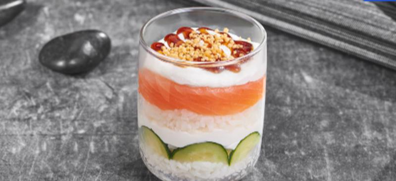 Состав: Крем чиз, лосось, огурец, японский соус, унаги соус, рисовые шарики (том ям), рис. *Внешний вид блюда может отличаться от фото на сайте.