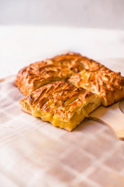 Состав: Манго, сахар, фирменное слоёно-дрожжевое (чуть сладковатое) тесто