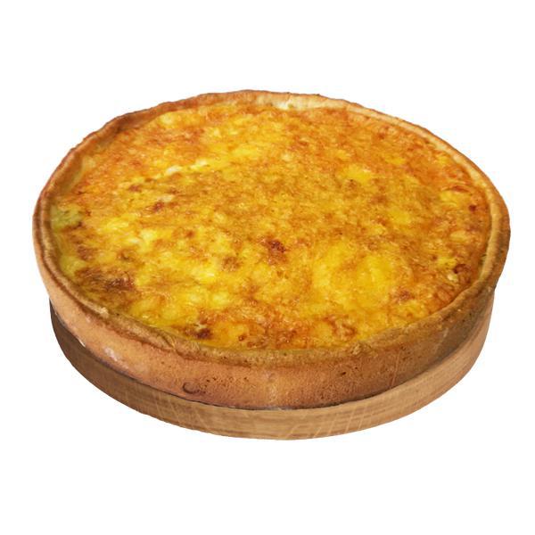 Состав: Киш с ветчиной и сыром, запеченный под сыром в сливочно-яичной заливке, тесто кукурузное.
