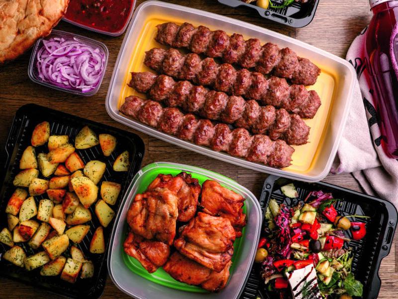 Состав: Люля-кебаб из курицы 600 г, шашлык из куриного бедра 500 г, картофель по-домашнему 400 г, салат греческий 400 г, лук маринованный 100 г, соус томатный отар 100 г, лаваш 1 шт, морс 1 л