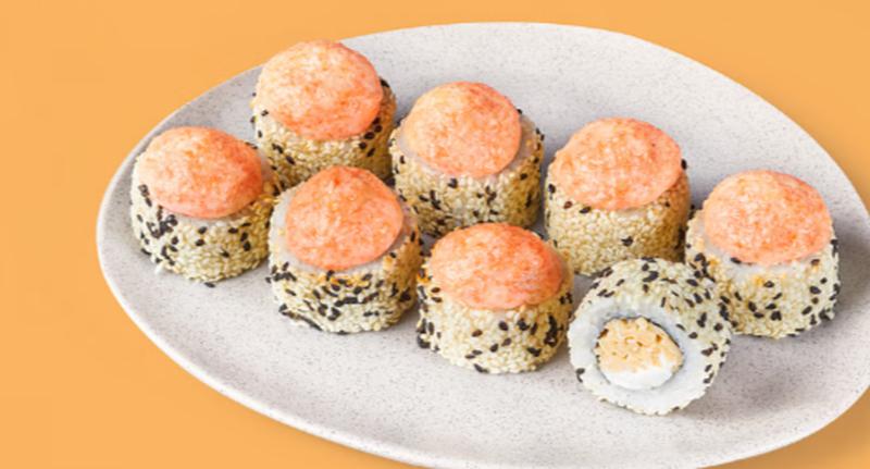 Состав: Блин тамаго, сливочный сыр, фирменный сырный соус (майонез, сыр пармезан, оранжевая икра масаго), кунжут, рис (рис, вода, заправка для риса), нори *Не забудьте заказать имбирь, васаби и соевый соус. Они не входят в стоимость заказа.
