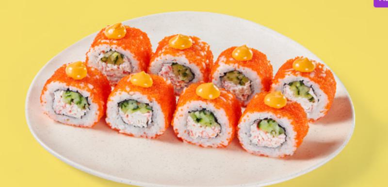 Состав: Крабовые палочки, икра масаго оранжевая, спайси соус, рис, нори. *Не забудьте заказать имбирь, васаби и соевый соус. Они не входят в стоимость заказа.