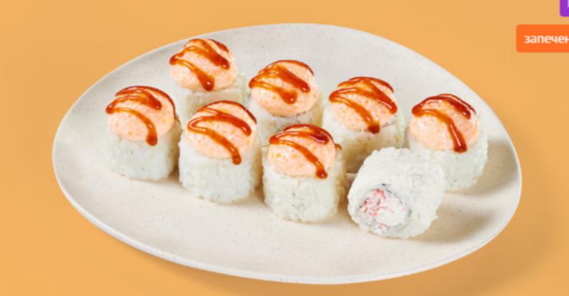 Состав: Сливочный сыр, крабовые палочки, фирменный сырный соус, унаги соус, рис, нори. *Не забудьте заказать имбирь, васаби и соевый соус. Они не входят в стоимость заказа.