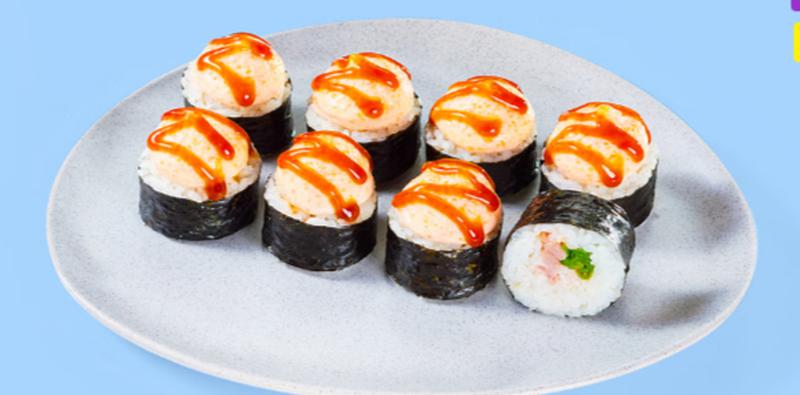 Состав: Бекон, зеленый лук, спайси соус, фирменный сырный соус, унаги соус, рис, нори. *Не забудьте заказать имбирь, васаби и соевый соус. Они не входят в стоимость заказа.