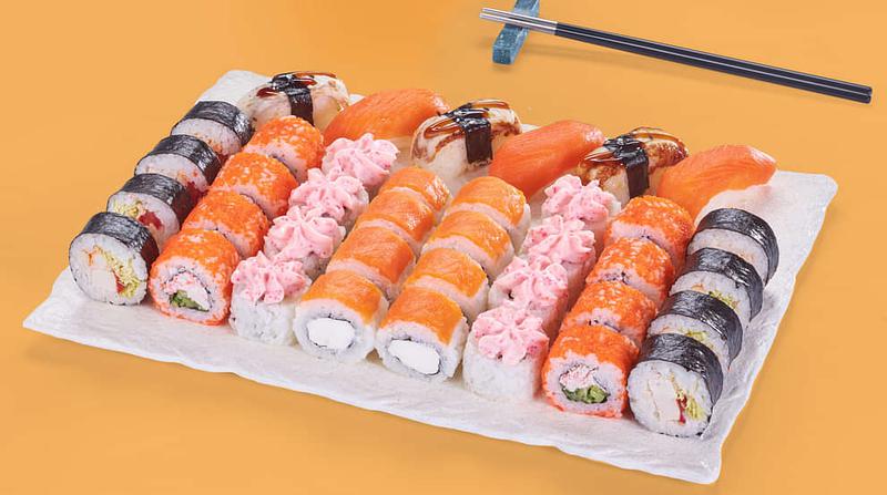 Состав: Филадельфия лайт (8 шт.), Калифорния супер лайт (8 шт.), Цезарь ролл (8 шт.), Лава краб (8 шт.), Суши с лососем (3 шт.), Суши с угрем (3 шт.) *Не забудьте заказать имбирь, васаби и соевый соус. Они не входят в стоимость заказа.