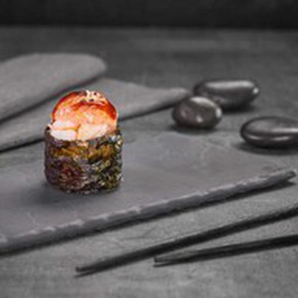 Состав: Креветка тигровая, рис, соус розовый, соус унаги, кунжут, водоросли нори.